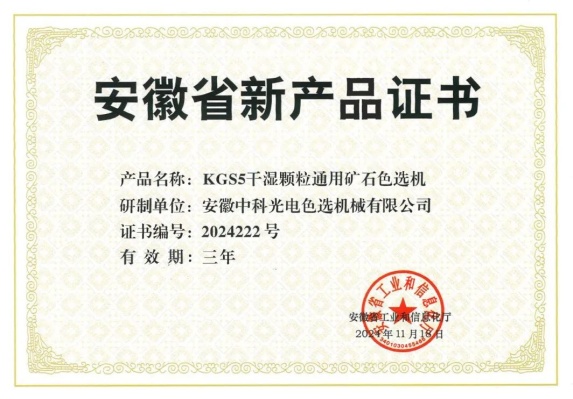 近日,安徽省工业和信息化厅公布了2024年第三批安徽省首台套重大技术装备名单,中科光电研发的“KGS5干湿颗粒通用矿石色选机”成功获批安徽省首台套重大技术装备认定。此前,该产品获得“安徽省新产品(2024年第三批)”认定。首台套重大技术装备,属于国内先进的标志性产品,是技术创新能力的体现,是衡量企业