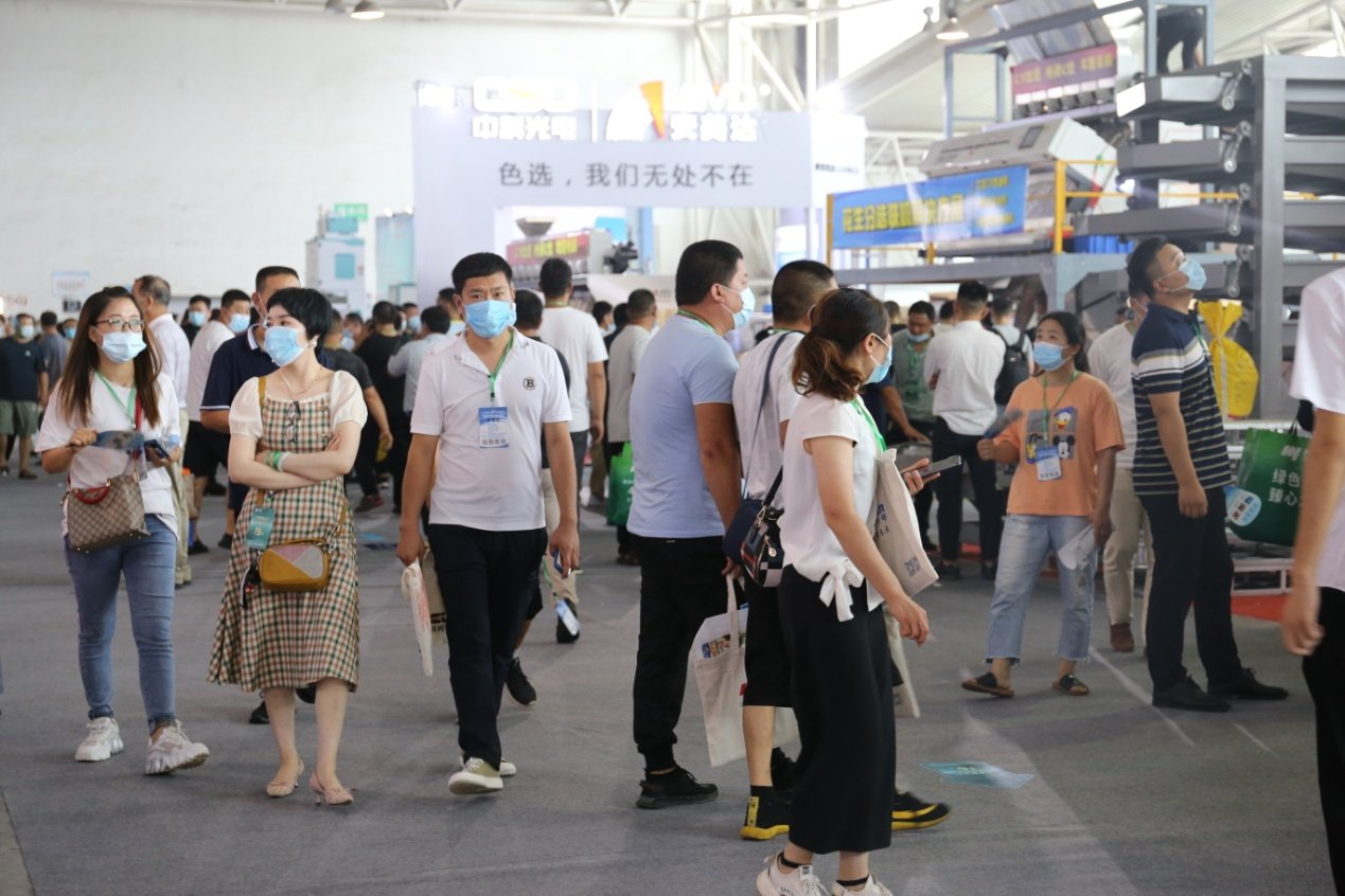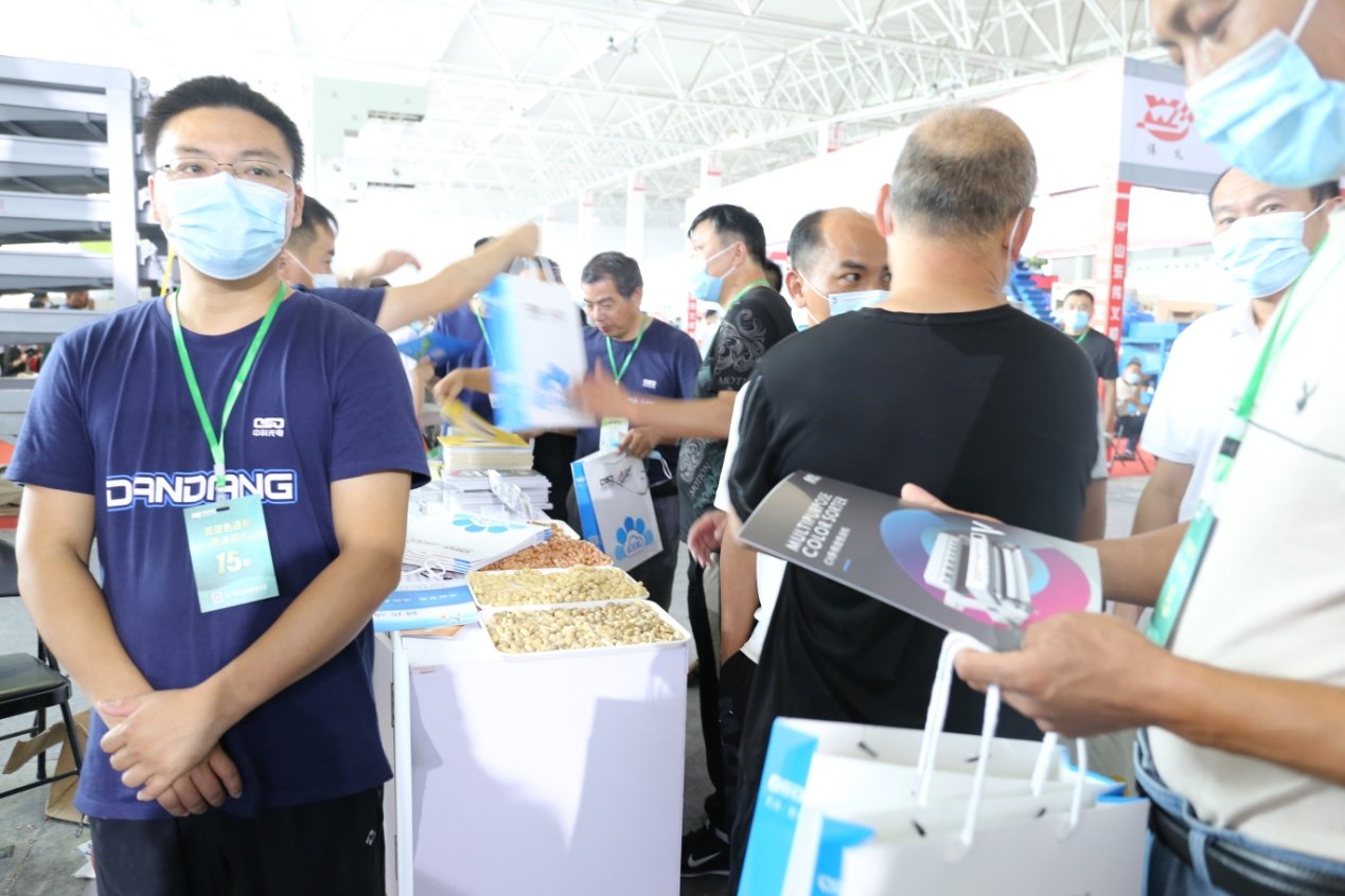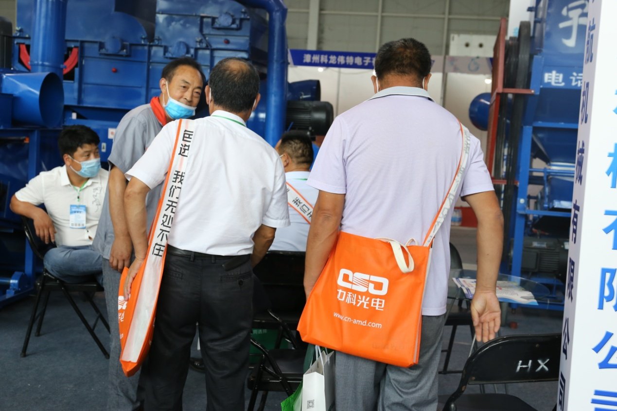 参展者身背中科光电背包,醒目的橘黄色彰显中科人对色选事业的热情与活力