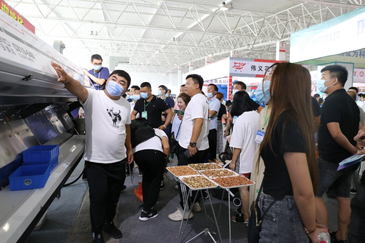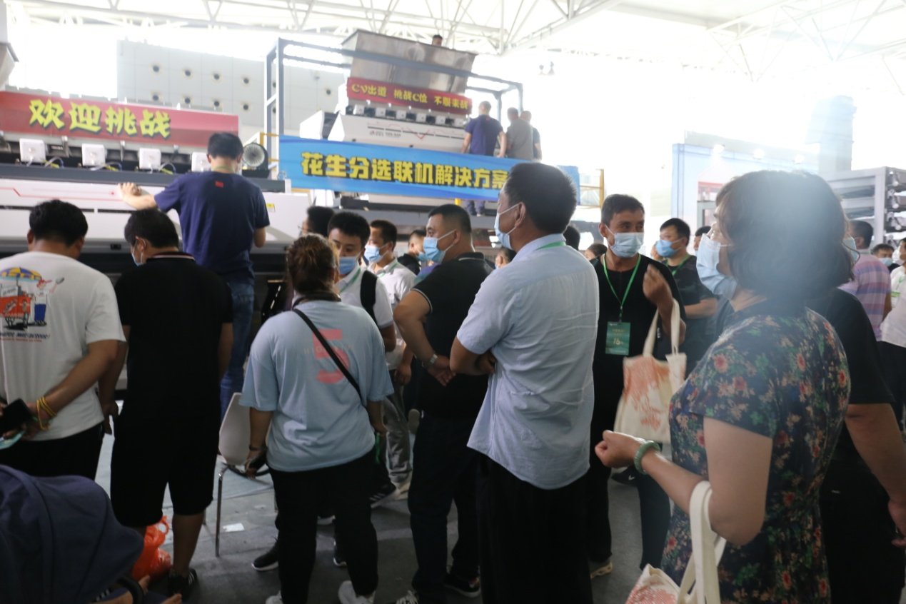 中科光电多功能杂粮色选机采用全新的光路设计,独特的底部抽风除尘系统,不同于以前的色选机,CV系列增加滑槽密度,提高整机产品,兼容红外拓展模块。中科光电工作人员现场色选花生,让参展者能真切感受CV系列色选机的魅力。